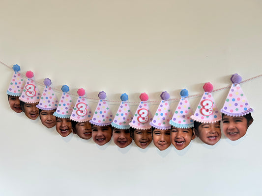 Choose from a variety of styles including crown banners, party hat banners, and themed custom face cut-outs – all designed using your favourite photos. Each piece is printed on premium 240GSM gloss card and includes twine for easy hanging.