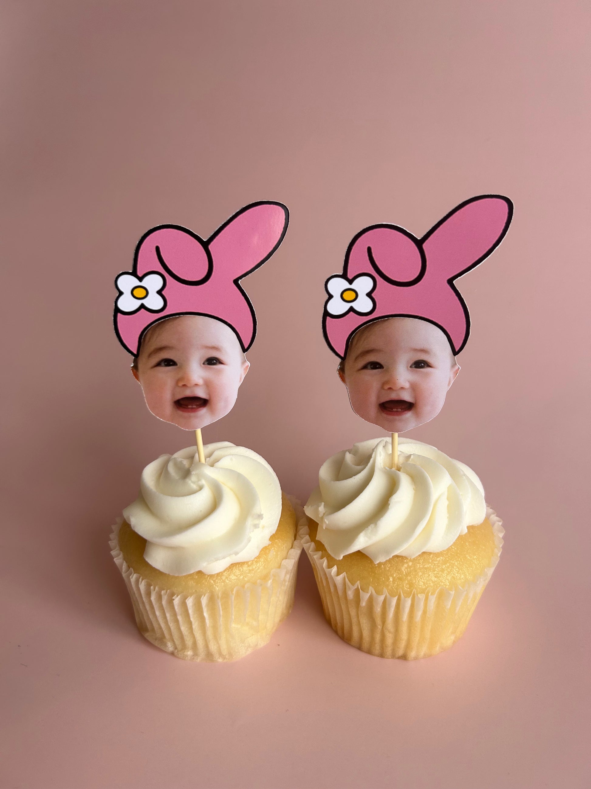Add a fun and personal touch to your cupcakes with these handmade Hello Kitty, Kuromi and My Melody themed photo cupcake toppers, featuring your favourite faces in party hats! These adorable toppers are perfect for first birthdays, baptisms, christenings, and any milestone event. Choose from 1 or 2 different faces, and select your preferred character or go with a mix.
